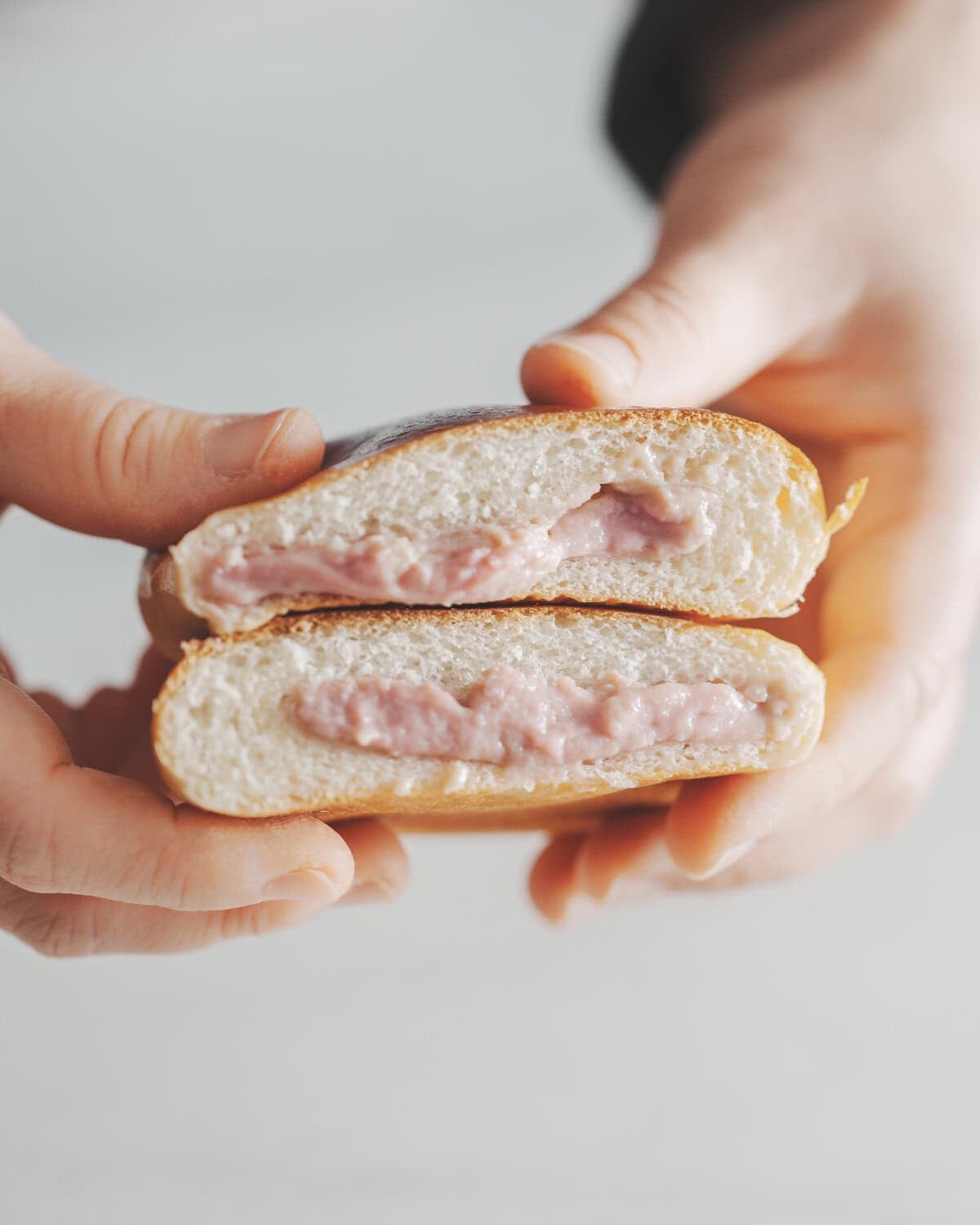 鬆軟到像雲朵一樣的日式甜麵包,裡面包的是烤完還會流心的草莓卡士達。